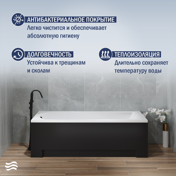 Ванна акриловая Lauter Amelia 180 / 21204080 (с каркасом, лицевым экраном черного цвета)