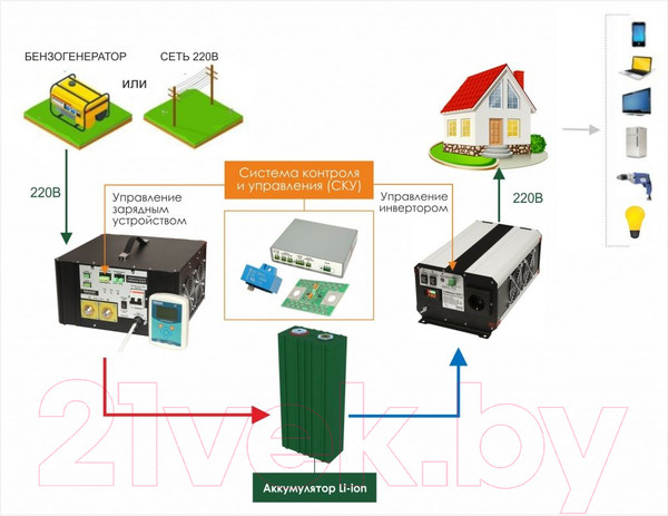 - Возможность организации систем автономного и резервного электроснабжения с литий-ионными аккумуляторами и Cистемой контроля и управления (СКУ)(BMS).