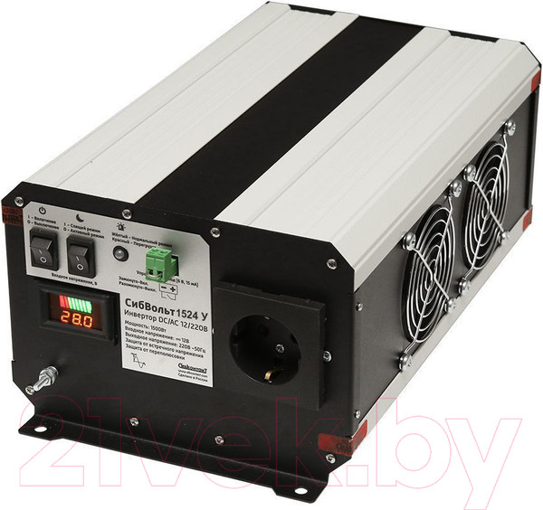 Инвертор СибВольт (преобразователь напряжения) преобразует постоянное напряжение от всех типов аккумуляторов с напряжением 24 В, в переменное синусоидальное напряжение 220 В и частотой 50 Гц. Качественные характеристики такого напряжения аналогичны характеристикам напряжения в бытовой сети.