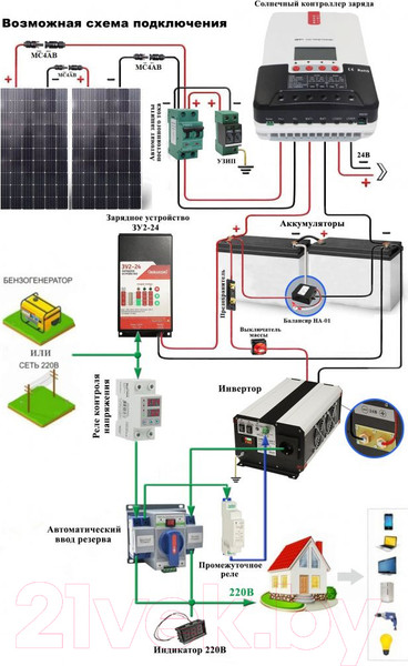 - Возможность автоматического управления работы инвертора с помощью различных реле напряжений, АВР, промконтроллеров и т.п.