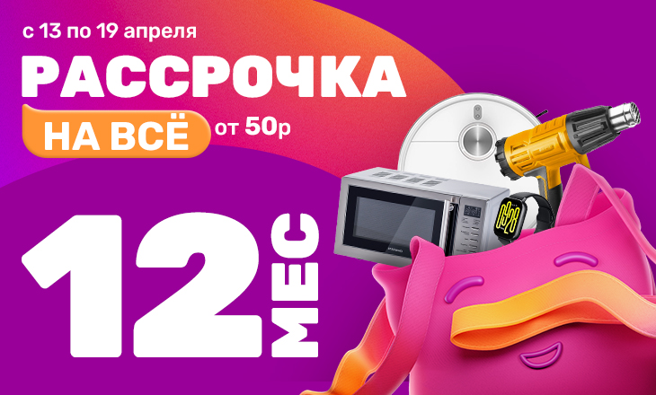 Покупайте необходимые товары от 50 руб. и получайте целых 12 месяцев рассрочки.