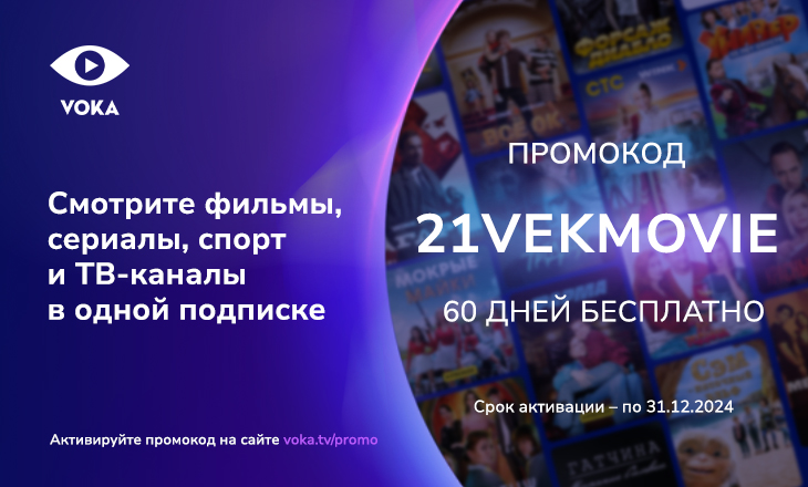Видеосервис VOKA дарит нашим покупателям промокод 21VEKMOVIE на подписку «Все включено».