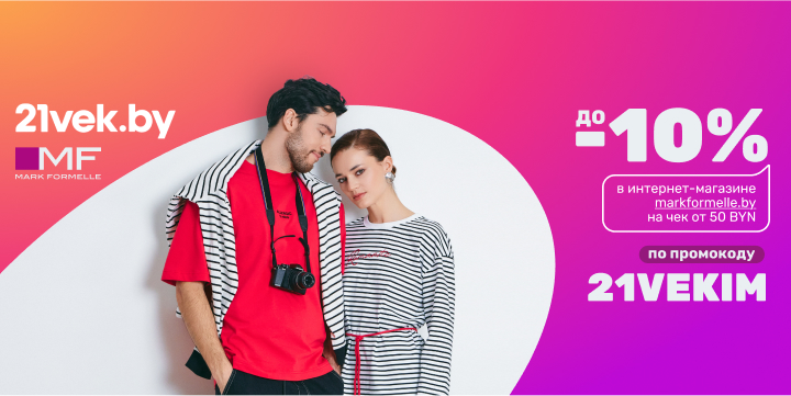 Для клиентов 21vek.by до 31 марта по секретному промокоду вы получаете скидку 10% в Mark Formelle на весь ассортимент! Скидку можно будет применить к покупкам от 50 BYN в интернет-магазине markformelle.by и в приложении. Скидка не распространяется на товары, участвующие в распродаже и других акциях.