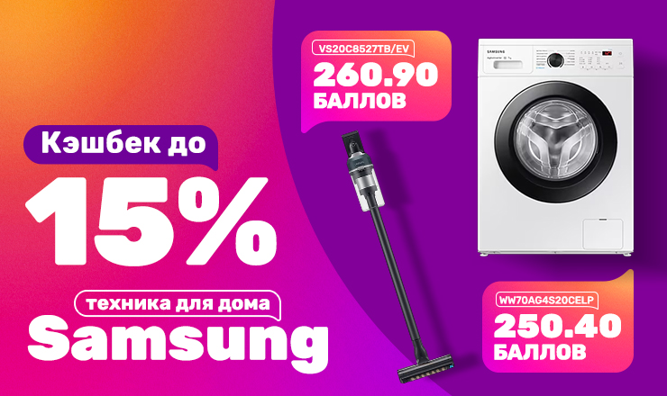 С 1 по 30 апреля 2025 года, мы начислим вам 10-15% бонусных баллов от стоимости Samsung в вашем заказе.