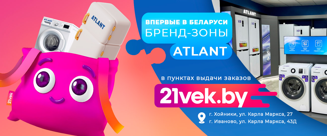 Рады сообщить о важном событии: в г. Хойники (ул. Карла Маркса, 27) и в г. Иваново (ул. Карла Маркса, 43Д) открылись бренд-зоны ATLANT, реализованные в партнерстве с онлайн-гипермаркетом 21vek.by. Это совместный проект двух ведущих белорусских брендов, объединивших усилия, чтобы сделать знакомство с техникой удобным, наглядным и доступным прямо в пунктах выдачи заказов.