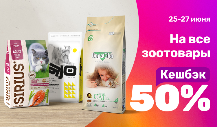 Только с 25 по 27 июня мы начислим вам 50% бонусных баллов при покупке зоотоваров.