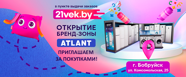 Онлайн-гипермаркет 21vek.by запускает специальную бренд-зону ATLANT в пункте выдачи заказов города Бобруйска (ул. Комсомольская, 25).