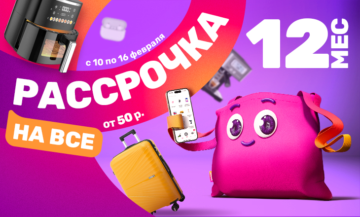 Приобретайте любые товары от 50 руб. в рассрочку на 12 месяцев.