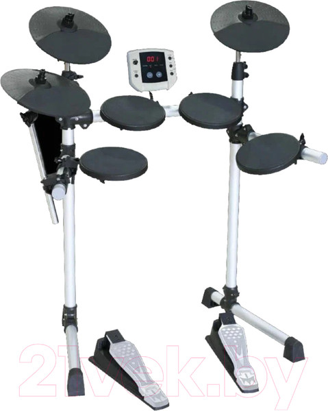 - малый барабан (1 шт), том (3 шт), хай-хэт, крэш-райд, педаль (хай-хэт тарелок 1 шт, бас-барабана 1 шт)
