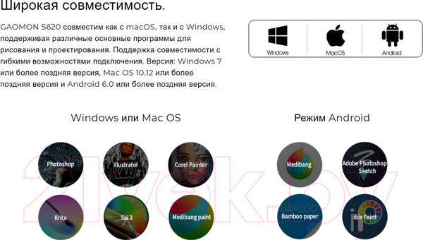 - Android (6.0 или более поздняя версия), Windows 7, macOS (10.12 или более поздняя версия), Windows 8, Windows 10, Windows 11