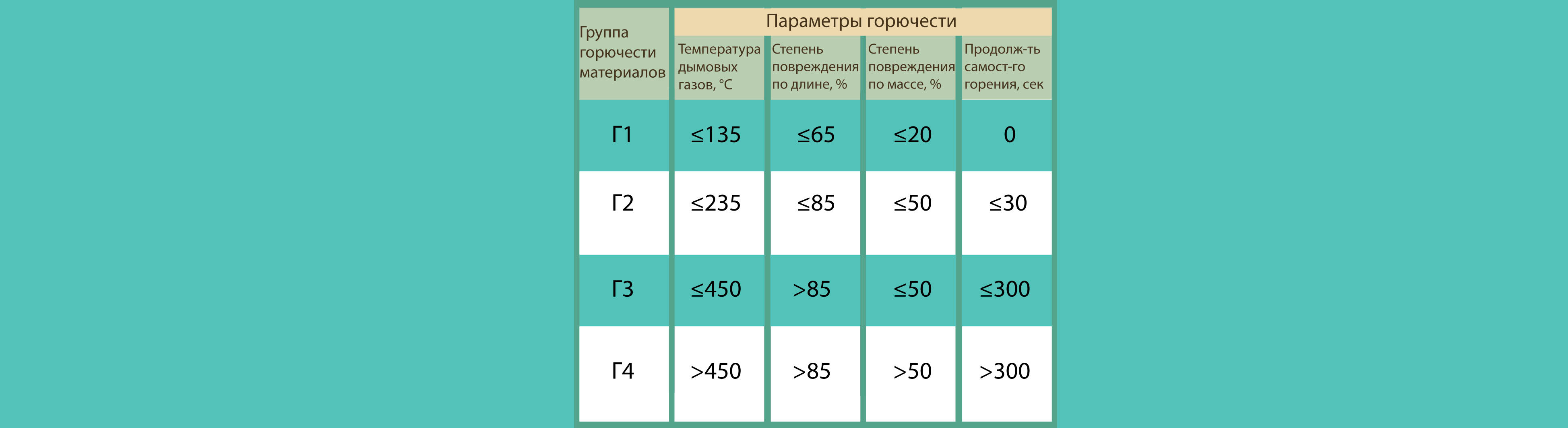 В первом случае все материалы делят на горючие (Г) и негорючие (НГ).