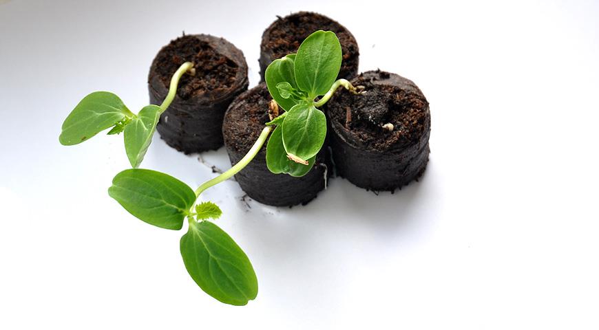 Для проращивания семян огурцов стоит использовать торфяные таблетки мелкой фракции, с нейтральной реакцией и диаметром более 42 мм, поскольку использование таблеток меньшего размера может привести к перерастанию сеянцев и вскоре потребуют пересадки.