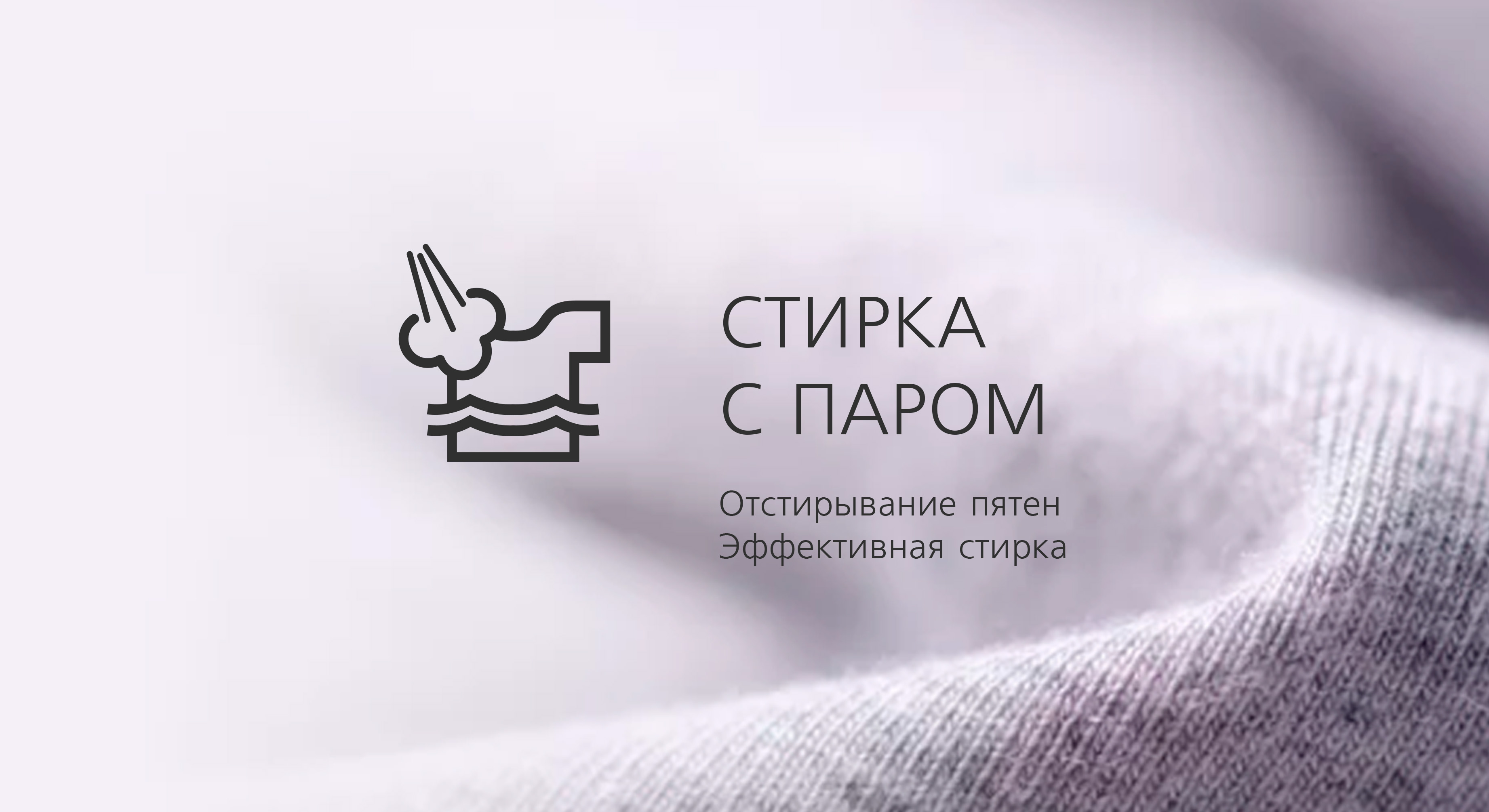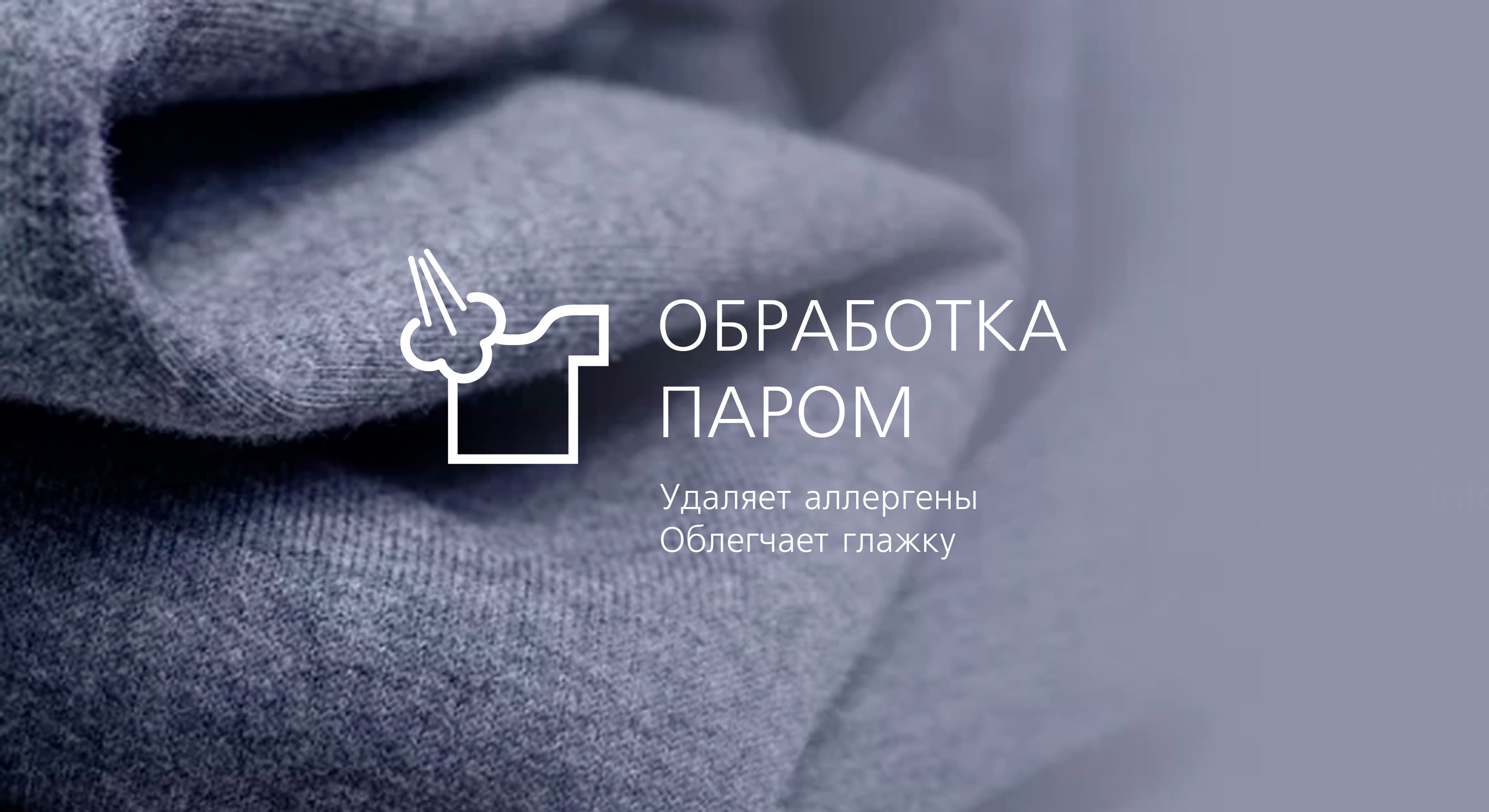 Технология Steam Clean включает в себя три режима очистки тканей: программа «Освежить», опции «Обработка паром» и «Стирка с паром».