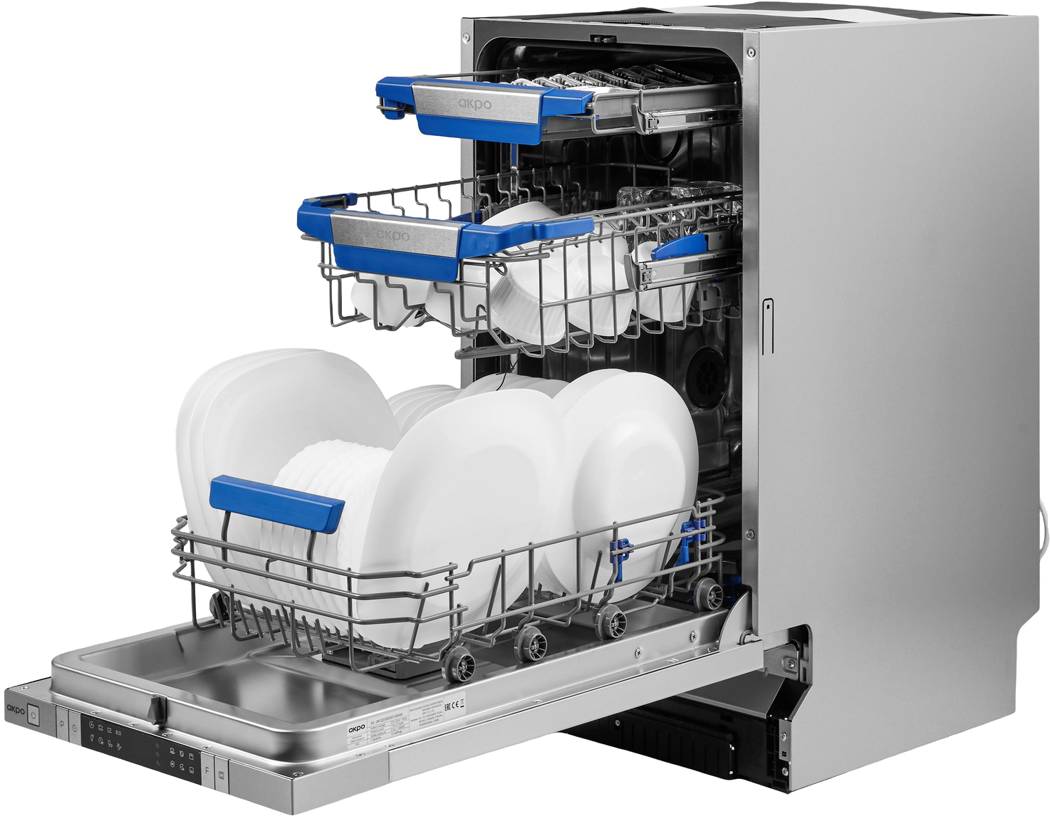 Узкая посудомоечная машина 45 см шириной — золотая середина между полногабаритной и миниатюрной техникой. Она компактна и не требует большой площади, но достаточно вместительная и способна отмыть большое количество посуды за одну загрузку.