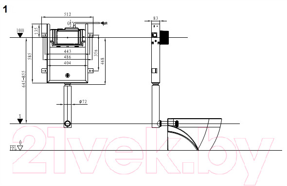- смывной бачок, кнопка смыва, монтажная рама, уплотнитель