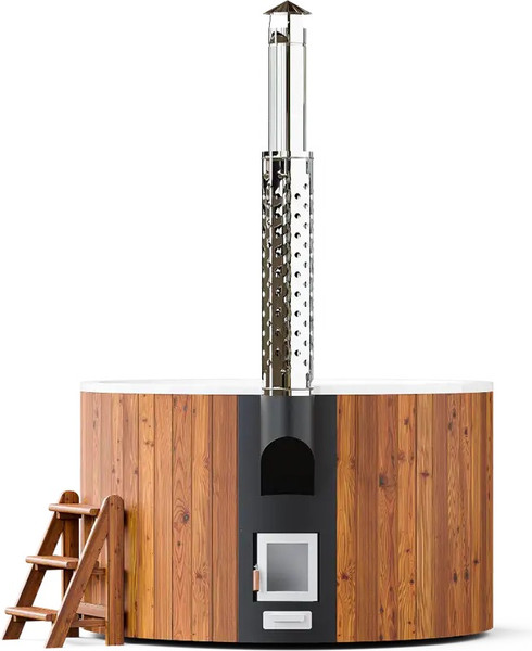 Внешняя отделка купели может быть выполнена из термососны (базово) или термоберезы в светлых (базово) или темных тонах.