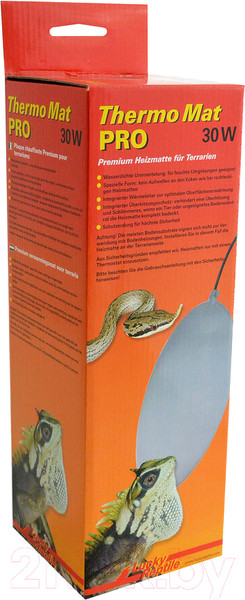 Это устройство используется для создания теплого места для рептилий, нуждающихся в обогреве. Коврик может нагревать как объекты внутри террариума, например, камни, так и напрямую обогревать питомца.Такой тип термоковрика оказывает минимальное влияния на изменение фоновой температуры.Подходит для установки в тропические террариумы, благодаря своей стойкости к влаге. Данный термоковрик оснащен функцией автоматического отключения в случае серьезного перегрева, что предотвращает возможность возгарания неправильно подобранного субстрата. Овальная форма коврика, в отличие от прямоугольной или квадратной, не подвержена изгибам и искривлениям углов. Термоковрик нагревается от 36 до 40 градусов Цельсия в непрерывном режиме. Для равномерного регулирования обогрева рекомендуем подключение специализированных цифровых термостатов или других контроллеров Lucky Reptile.ОсновныеТип: термоковрик для террариума, Назначение: для террариума, Мощность (Вт): 30, Диапазон температуры обогревателя (°C): от 36 до 40, РазмерыДлина/диаметр (см): 50, Ширина (см): 30.