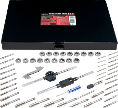 Количество в наборе 58 шт. Марка стали инструментальная (NO/CS) Направление резьбы правосторонняя Диаметр резьбы метрический М2, М3, М4, М5, М6, М7, М10, М12, М8 Диаметр резьбы дюймовый 1/8"